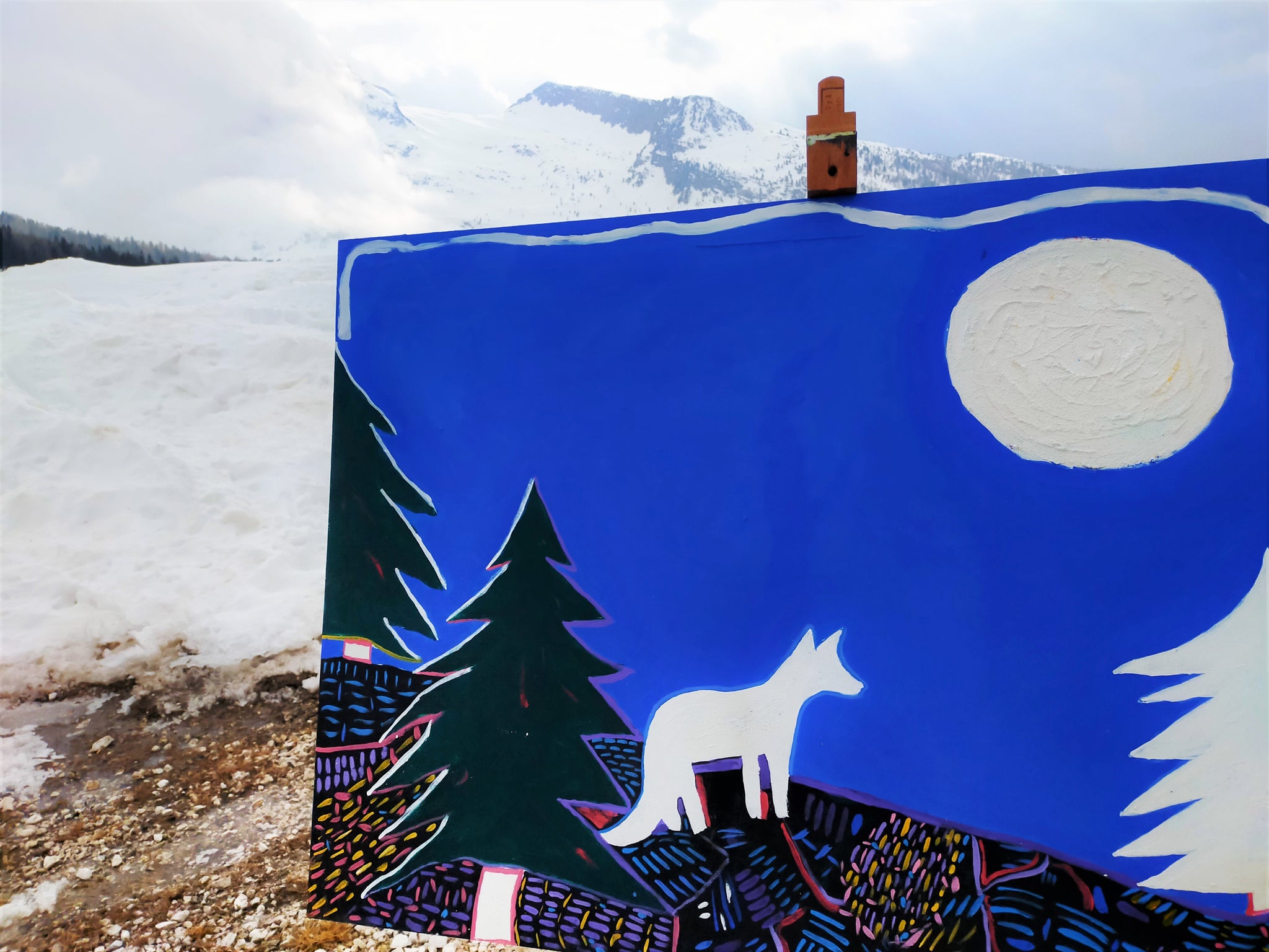 On a cold day in the mountains in March 2020 under the Dolomites.