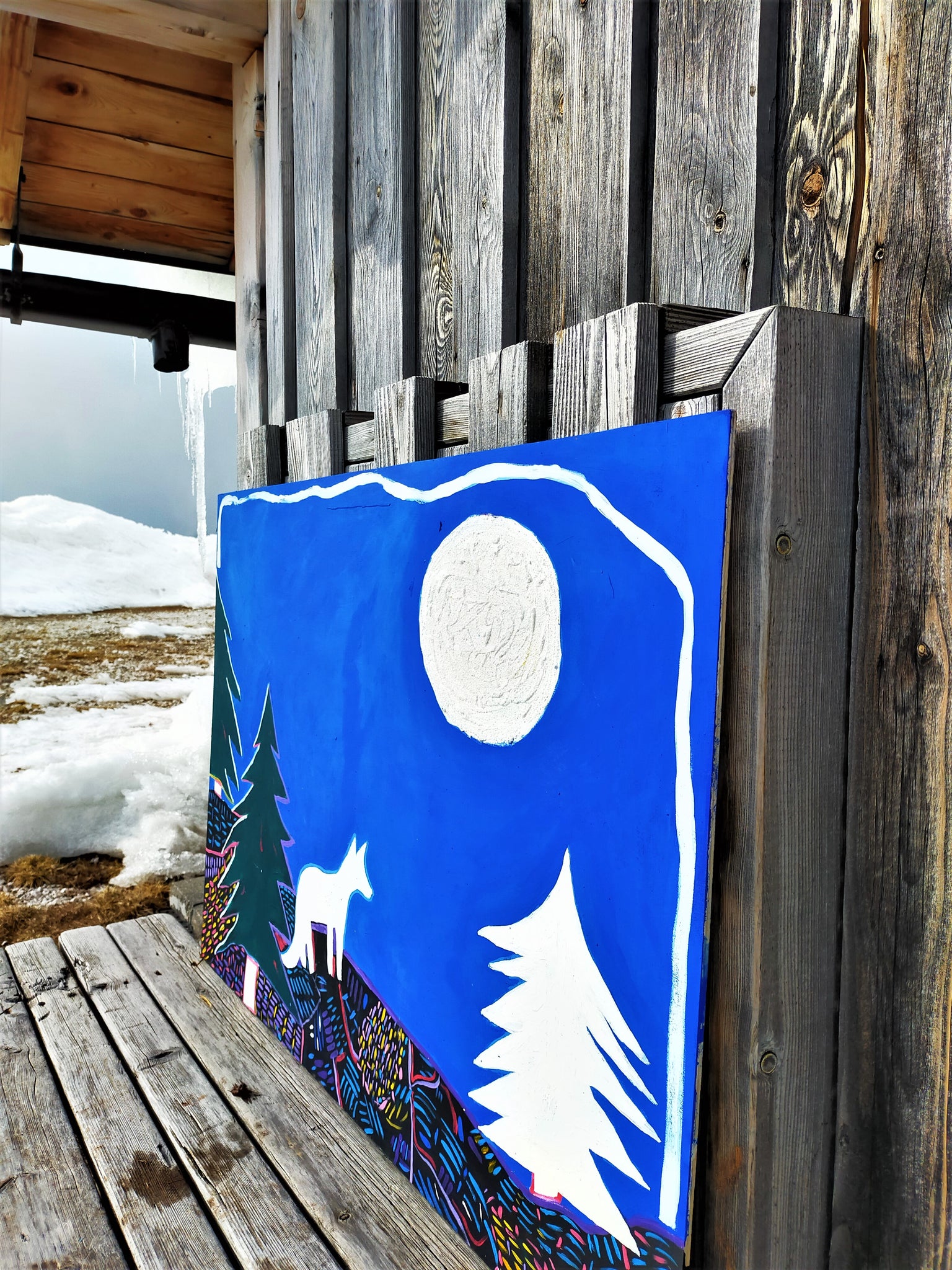 TECNIQUEAcrylic, paint and pastel on wooden panel.